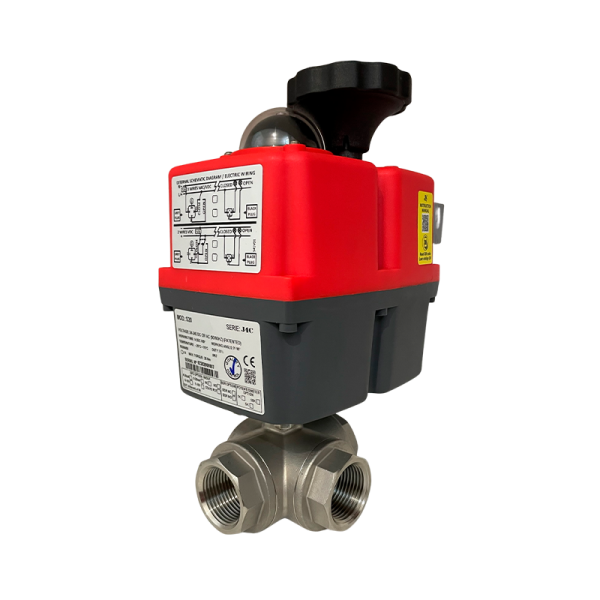 Válvula de Bola 3 Vías Roscada NPT con Actuador Eléctrico Valvulas Automatizadas Industriales Eléctricas